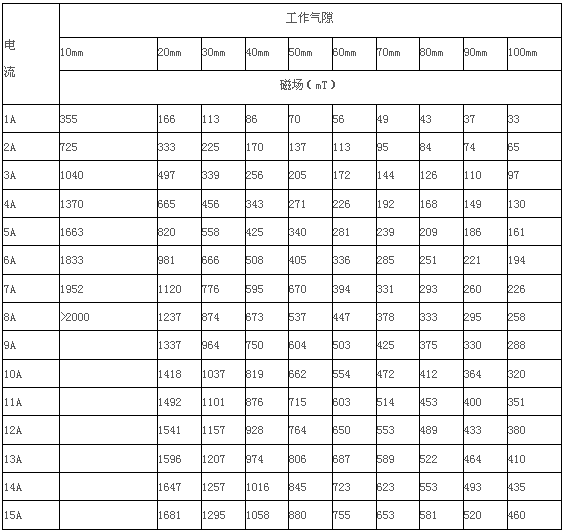 2.5、剩 磁 :H≤12mT,氣隙10mm時