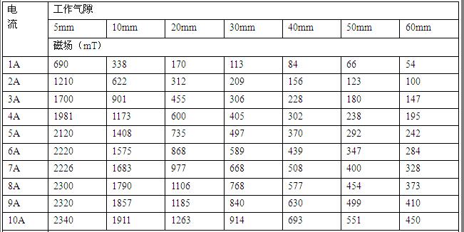 電磁鐵工作氣隙磁場(chǎng)是根據(jù)電磁感應(yīng)原理,電流源對(duì)磁場(chǎng)線包供直流電流,并由導(dǎo)磁回路聚磁產(chǎn)生磁場(chǎng),調(diào)節(jié)氣隙大小,改變極面直徑,調(diào)整工作電流均可改變工作氣隙磁場(chǎng)的大小強(qiáng)弱。
